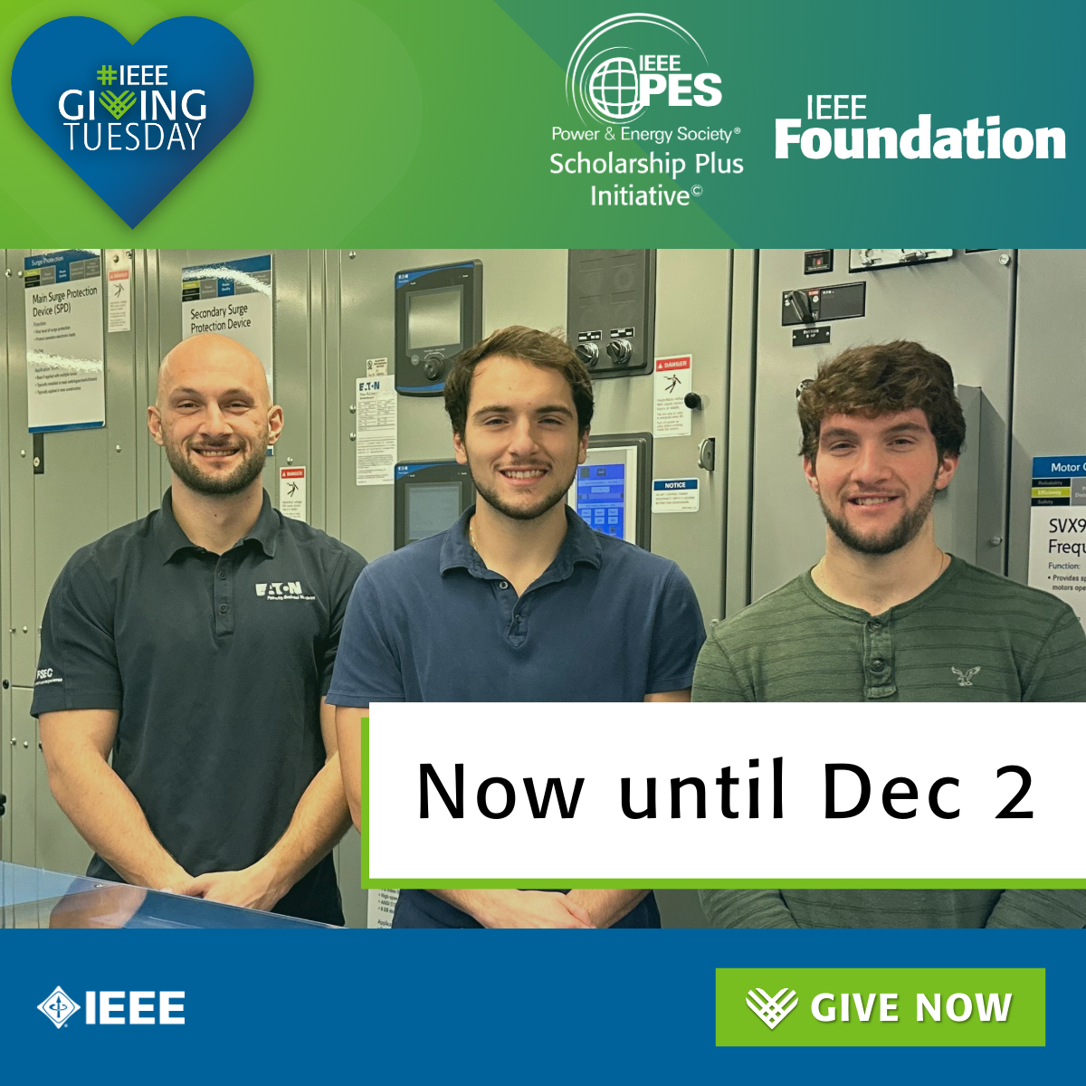 In celebration of Giving Tuesday 2025, IEEE PES Scholarship Plus Initiative is accepting donations from now until the holiday on December 2nd. We need your help to reach our goal to raise $10,000, which will serve as additional funding to support the next generation of power and energy professionals.
